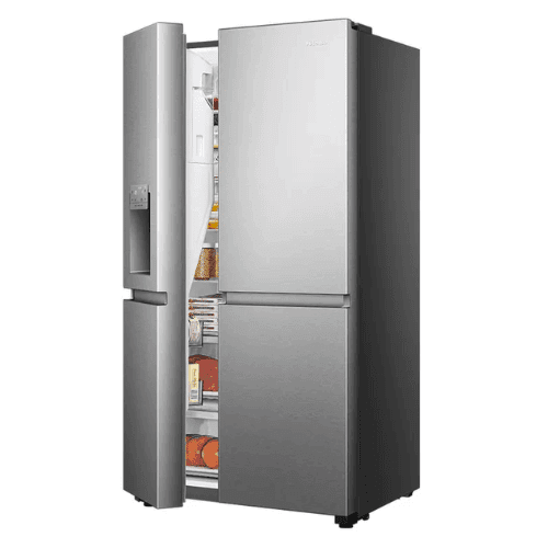 The Hisense REF82WS 601L Double Door Refrigerator is a high-capacity cooling solution designed for large households. Featuring advanced No Frost technology, it prevents ice build-up while keeping food fresh for longer. Its built-in water dispenser ensures easy access to chilled water, and the low-noise operation makes it a comfortable fit for any home. Powered by eco-friendly R600a refrigerant and styled in a sleek silver finish, this refrigerator blends functionality, efficiency, and modern design.