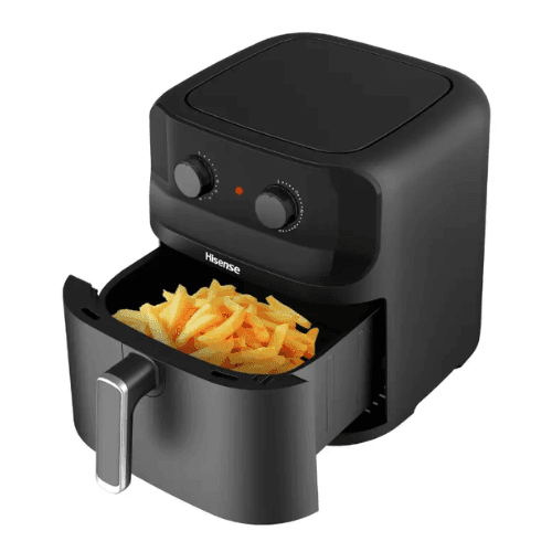 Enjoy healthier, oil-free cooking with the Hisense 8L Air Fryer. Designed with a large frying basket, it’s perfect for family-sized meals. The manual control knobs make operation simple and reliable, while the vacuum feet ensure stability during use. With its elegant black design, this air fryer blends seamlessly into any modern kitchen.