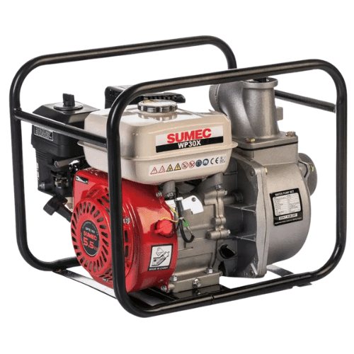The Sumec Petrol Water Pump WP30X is a high-performance 3-inch petrol-powered pump designed for heavy-duty water transfer. It features a robust 5.5HP air-cooled OHV engine that delivers strong suction and discharge power, making it ideal for irrigation, construction sites, flood control, or domestic water supply in areas without reliable electricity. Compact yet powerful, it is built for durability and easy maintenance.