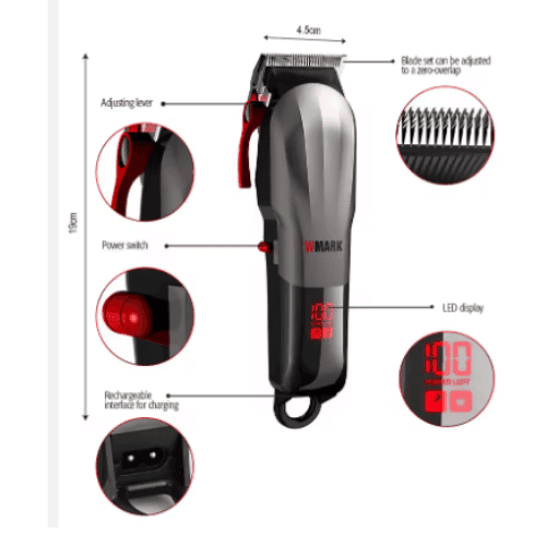 The WMARK Professional Rechargeable Wireless Hair Clipper is a high-performance grooming tool built for barbers and home users. It combines a powerful motor, precision-engineered blades, and a long-lasting battery to deliver smooth, even cuts every time. Its cordless design offers total freedom of movement for hassle-free trimming.