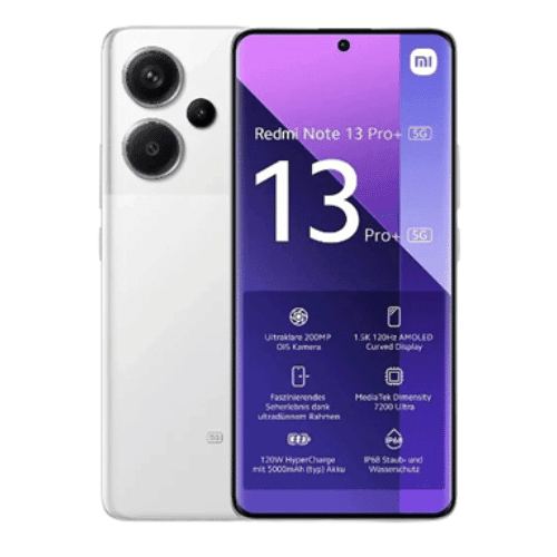 The Redmi Note 13 Pro+ is a premium mid-to-upper tier smartphone offering from Xiaomi, designed for users who want flagship-style performance without flagship pricing. With a high-refresh AMOLED display, hi-end camera hardware (including a 200MP main shooter with optical stabilization), super fast wired charging, 5G connectivity, and large RAM + storage, it’s built for power users, content creators, and those who demand high specs.